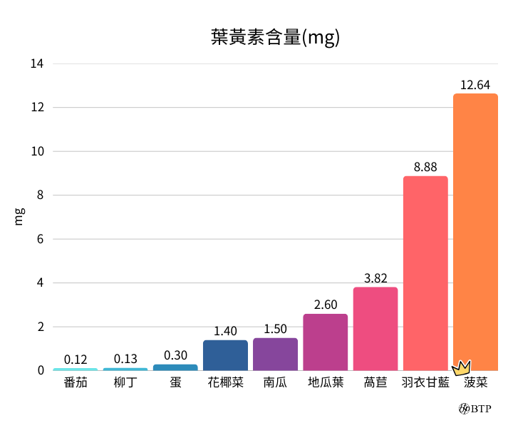 葉黃素食物排行一覽表: 葉黃素能讓植物呈現鮮豔色彩,如蔬菜水果的紅色、橙色、黃色和綠色,但外表呈橙色或黃色的蔬果,並不一定含有大量葉黃素。相比之下,深綠色蔬菜通常擁有更高的葉黃素含量。食物中的葉黃素多與其他分子結合,必須轉變為游離型態才能被小腸吸收。