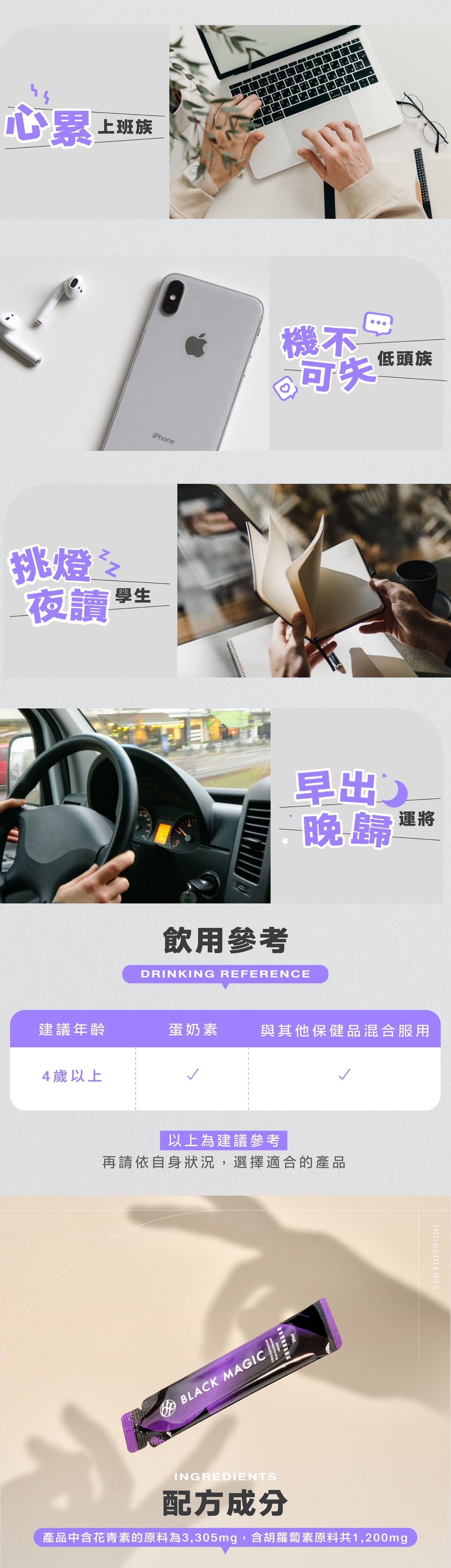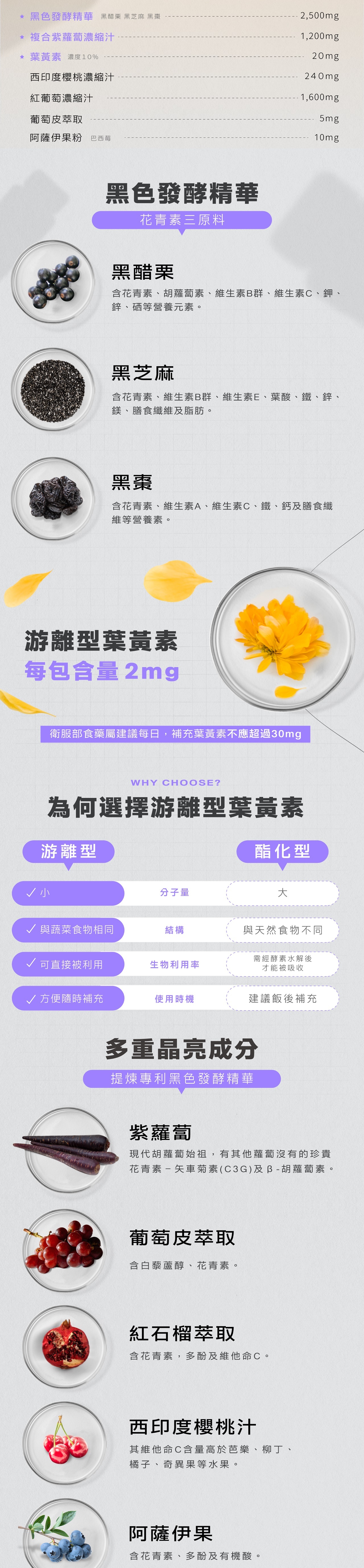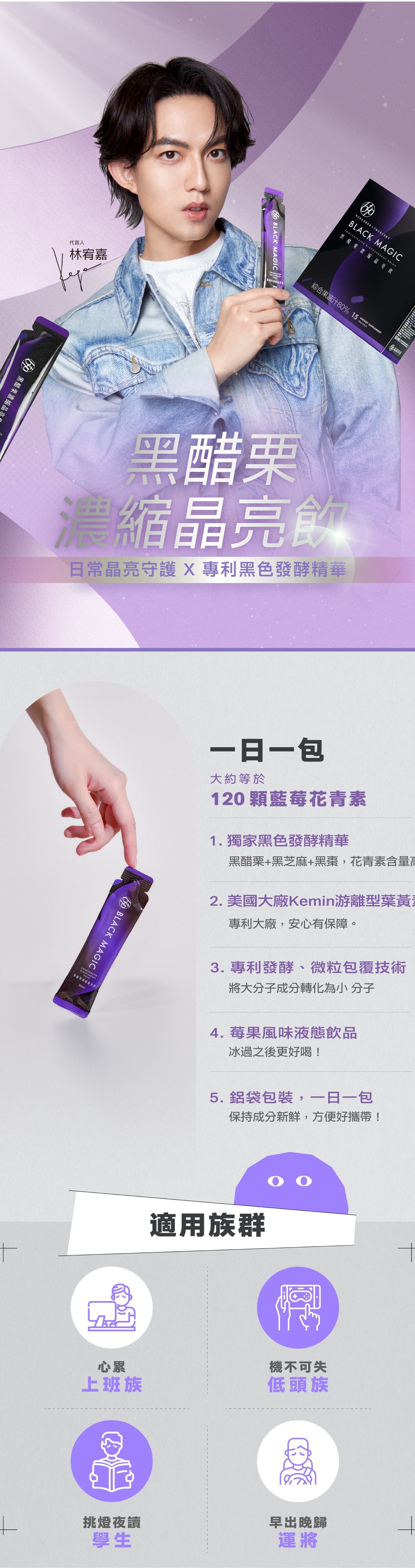 ▸ 專利黑色發酵精華:黑醋栗 + 黑芝麻 + 黑棗