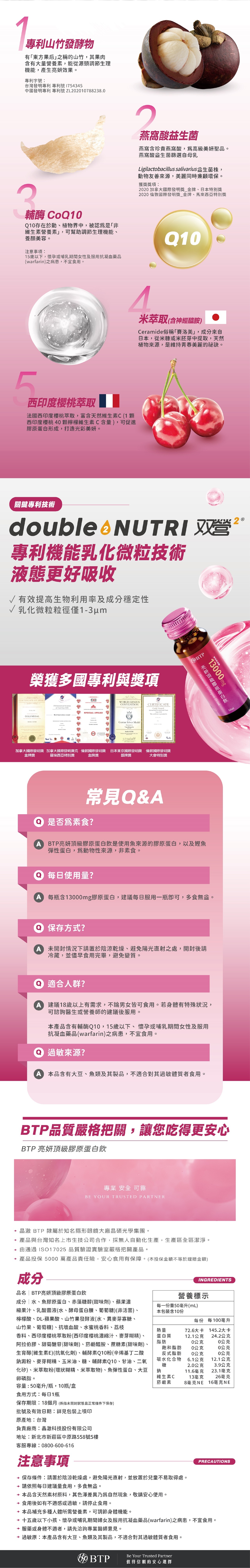 ▸ 業界最高13,000mg 日本NIPPI膠原蛋白肽 (5,000 Da)
