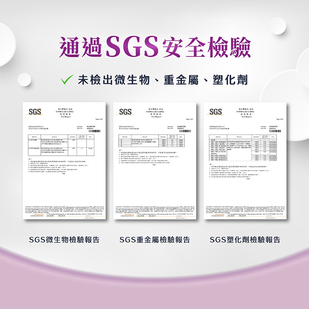 ▸ 通過SGS安全檢驗:❌重金屬 ❌微生物 ❌塑化劑